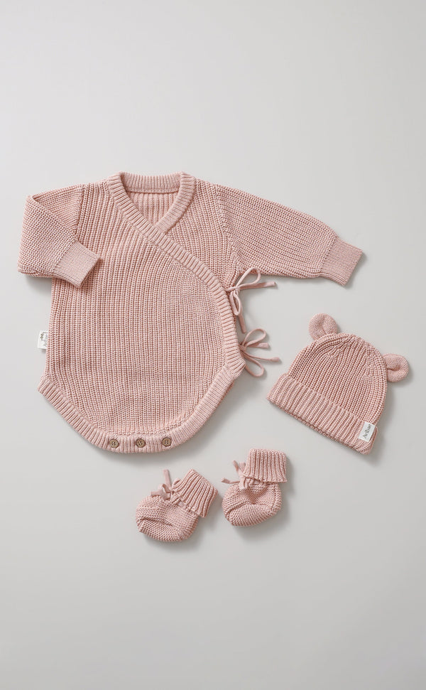 Avibae Luxary Cotton Patterned Openwork Romper 3-Piece Buddle Pearl Rose