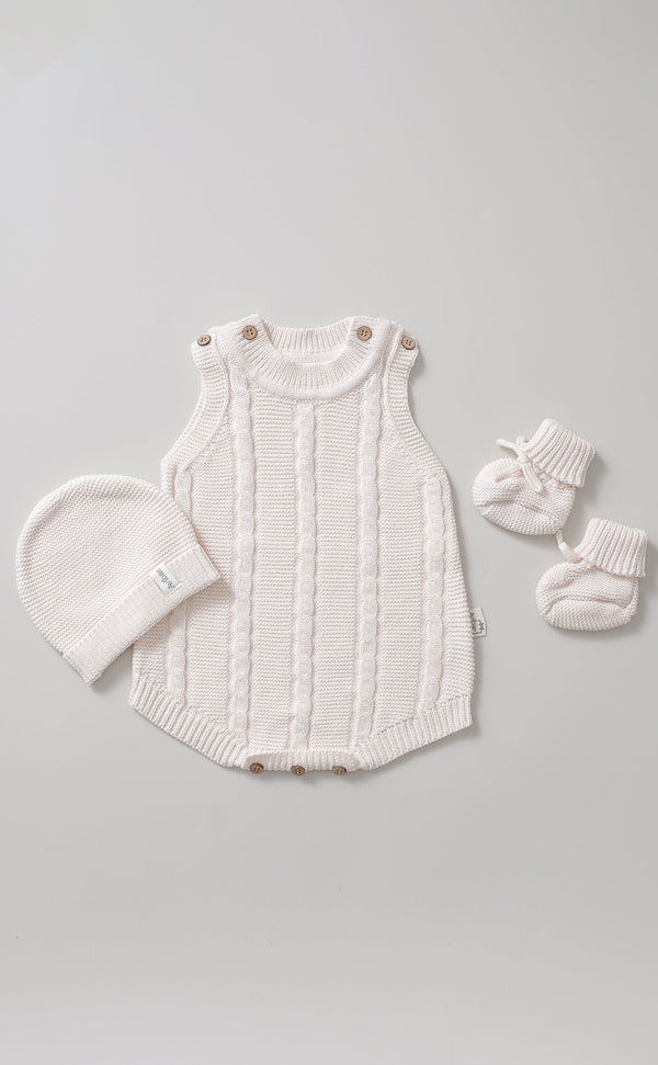 Luxary Cotton Baby 3-Pieces Cable Knit Gift Bundle
