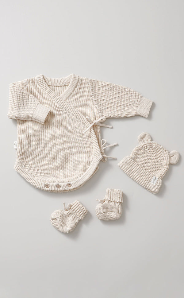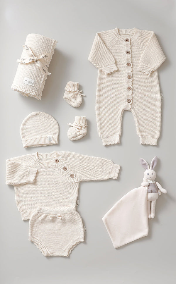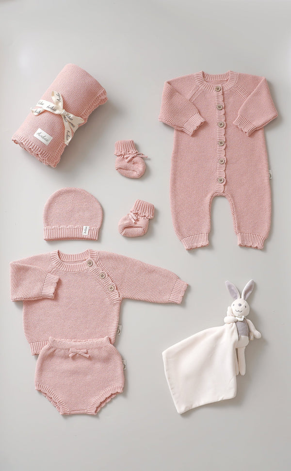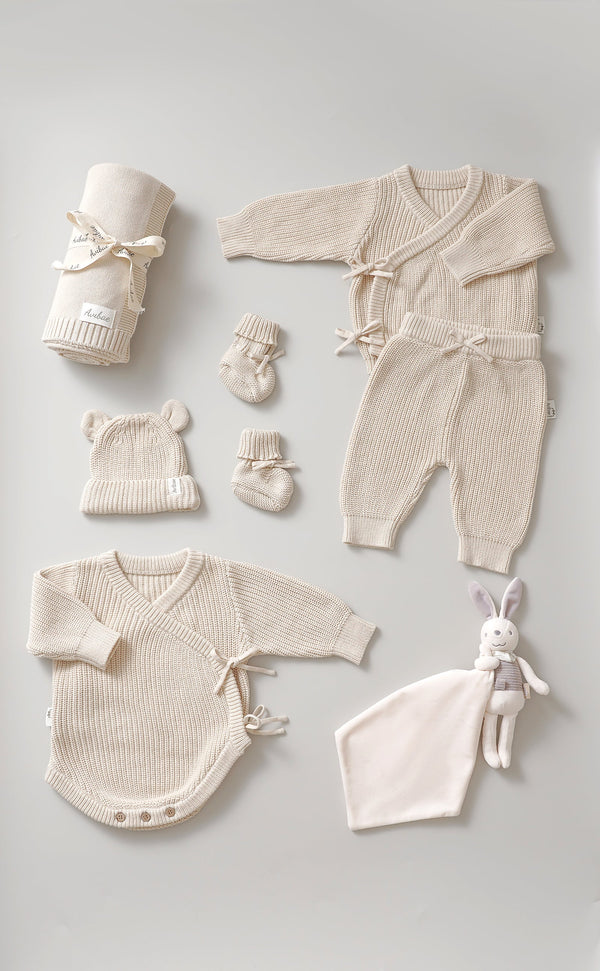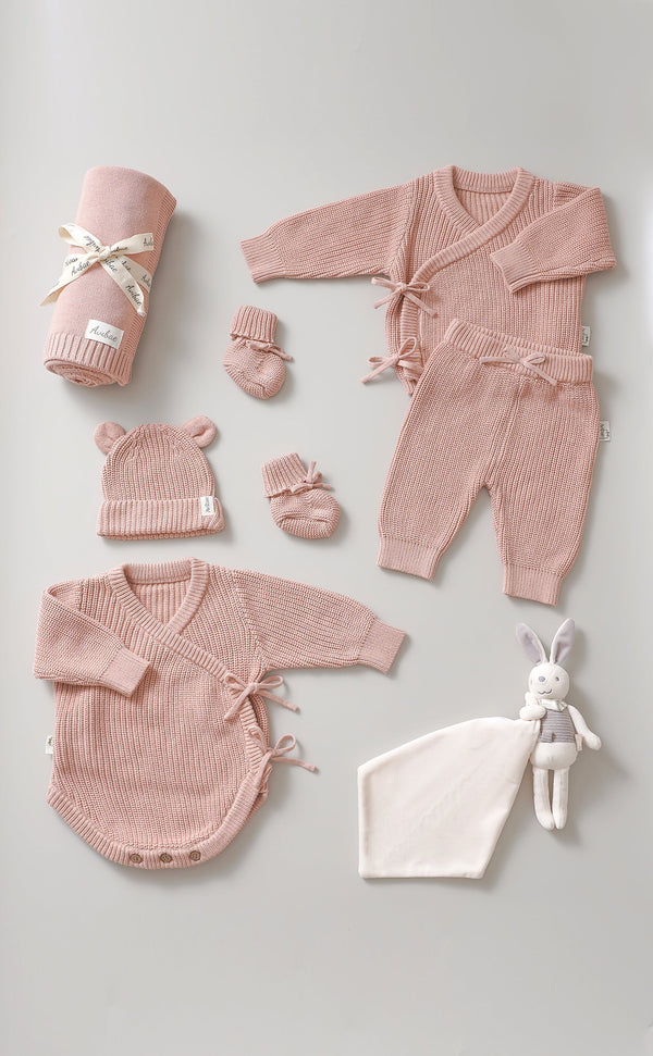 Luxary Cotton Baby 7-Piece Misty Apricot Cable Knit Bundle Gift Set