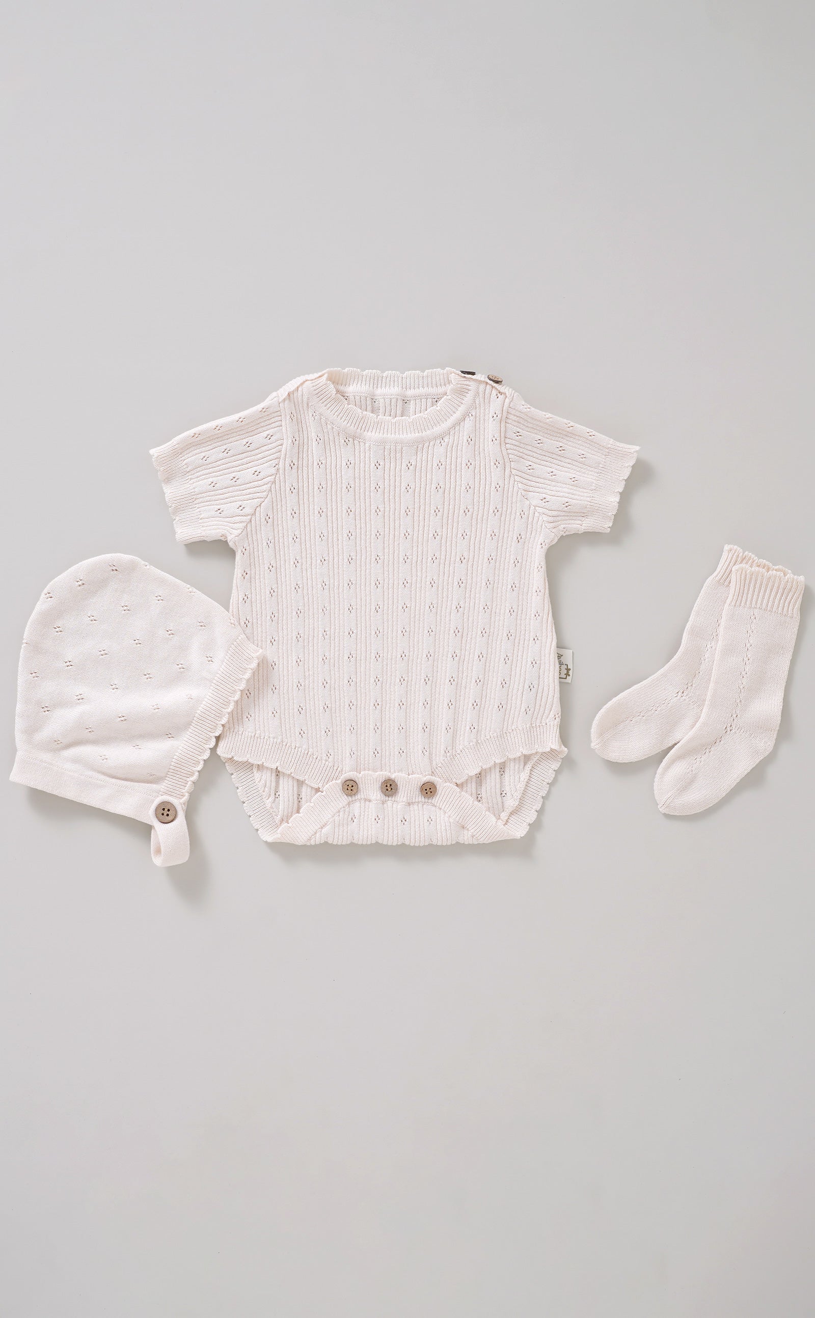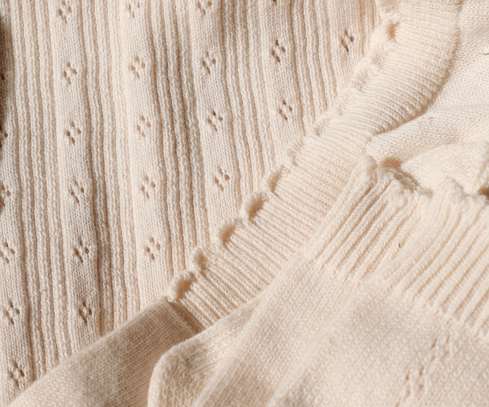 Avibae Luxary Cotton Patterned Openwork Romper 3-Piece Buddle Creamy White