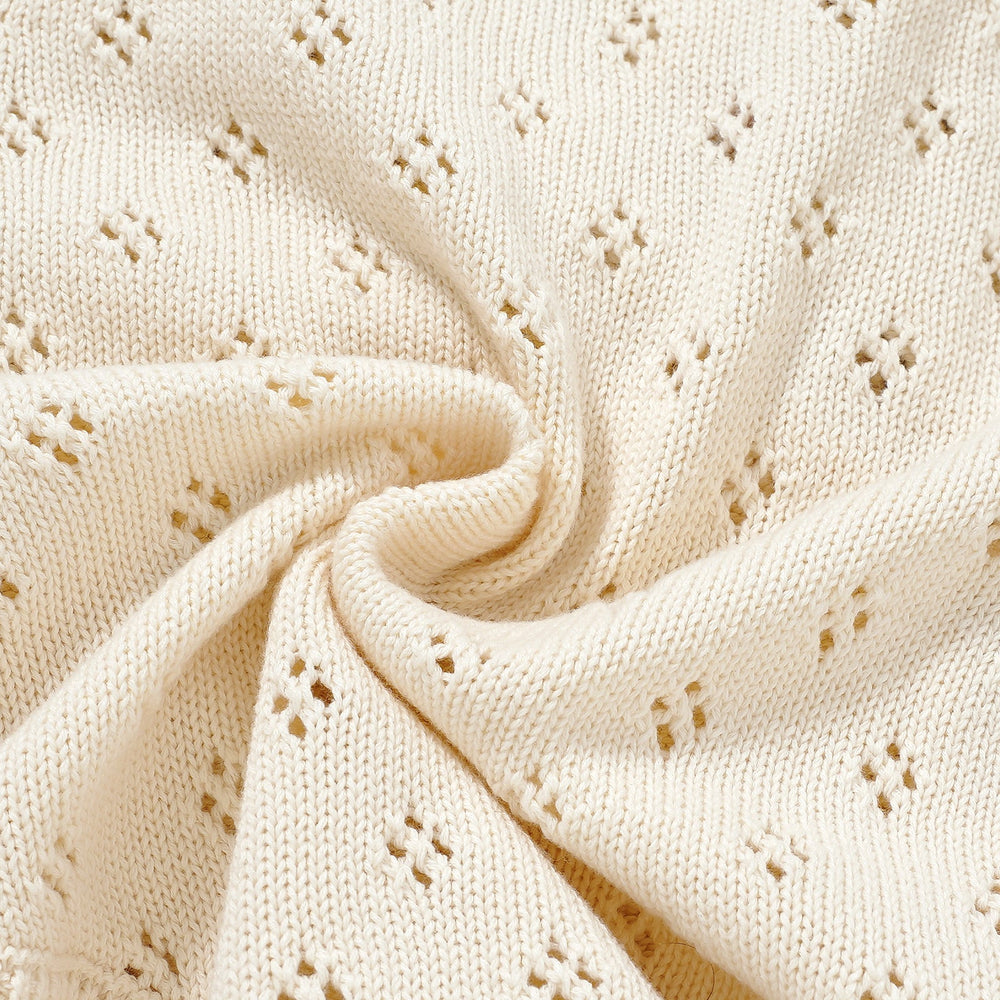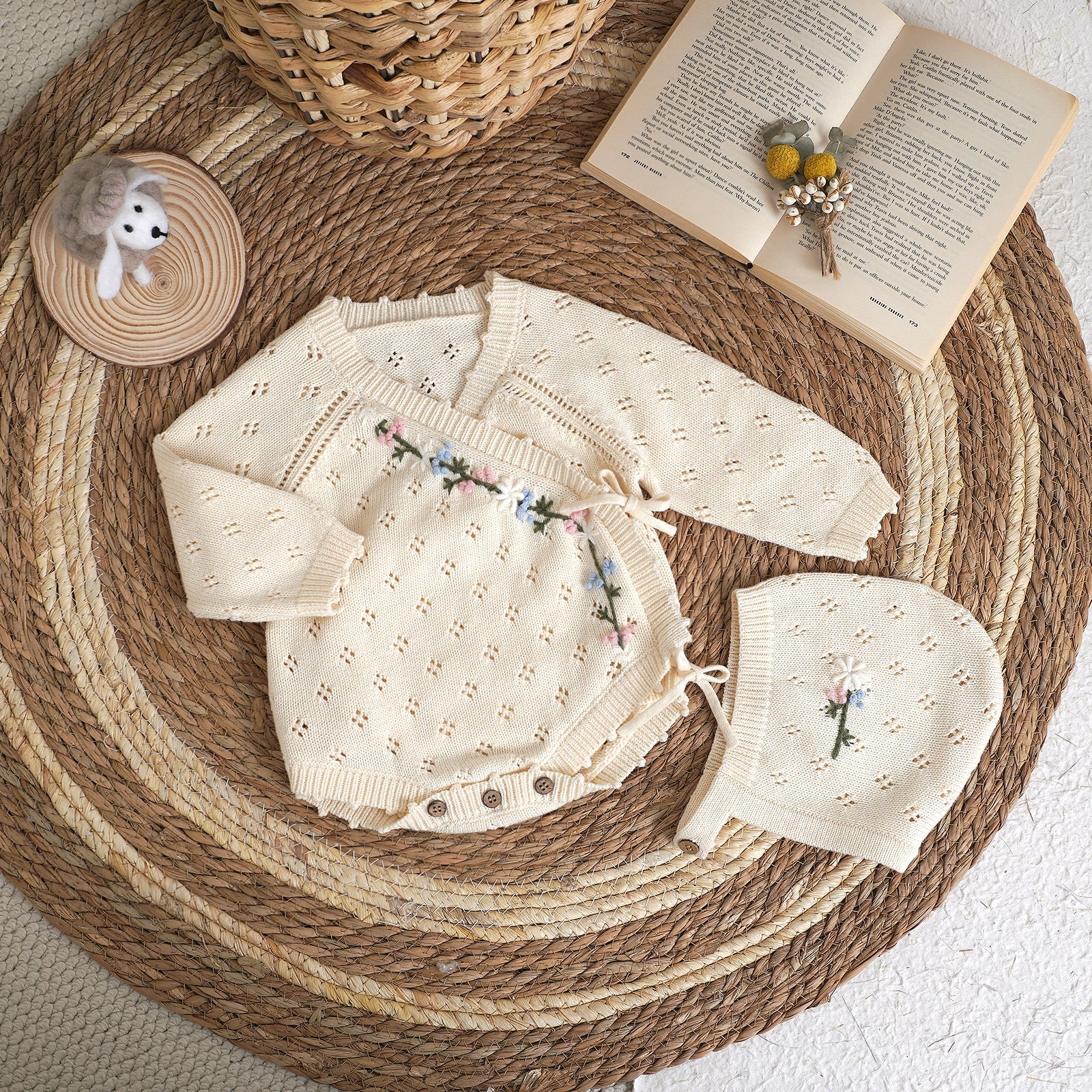 Hand Embroidery Flower Cotton Romper 2-Piece Creamy White